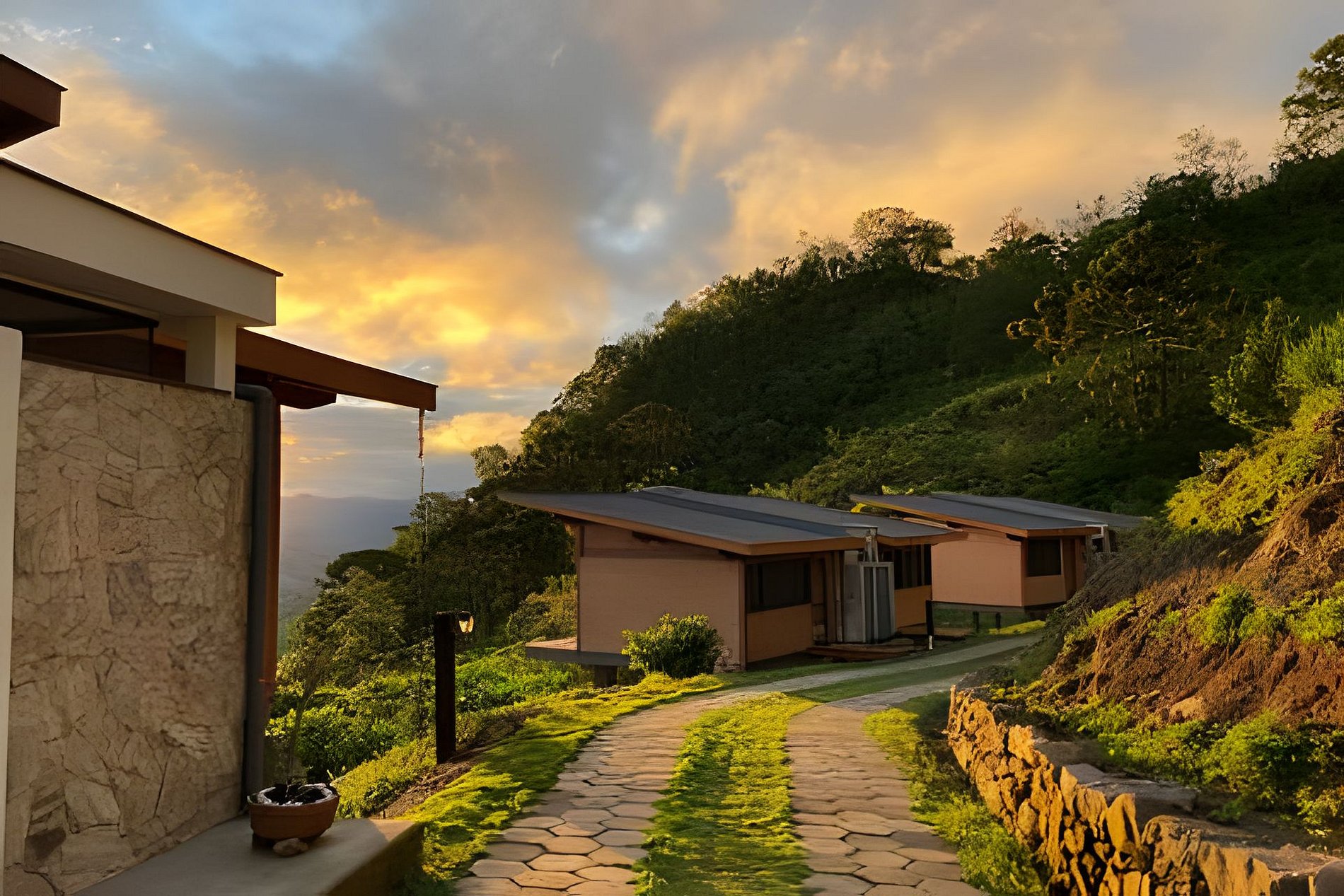 Os chalés encontram-se na serra do Quilombo, bairro de preservada tradição cultural e de comunidade muito acolhedora.