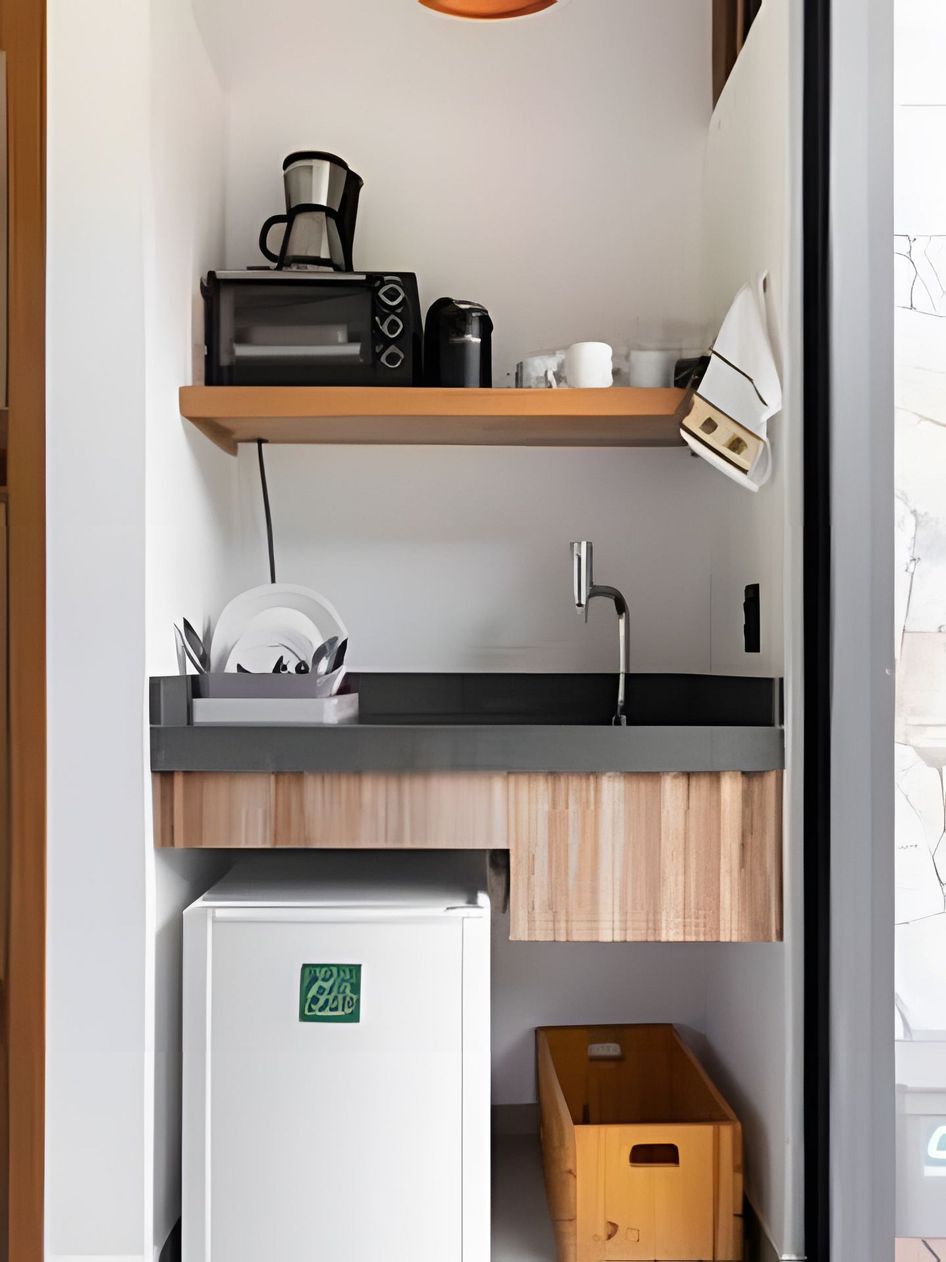 A Gorjeios oferece uma cozinha de uso compartilhado, equipada com fogão cooktop, geladeira, forno, liquidificador, air fryer, sanduicheira e todos os utensílios para cozinhar, neste espaço comum também há um forno de pizza e churrasqueira.