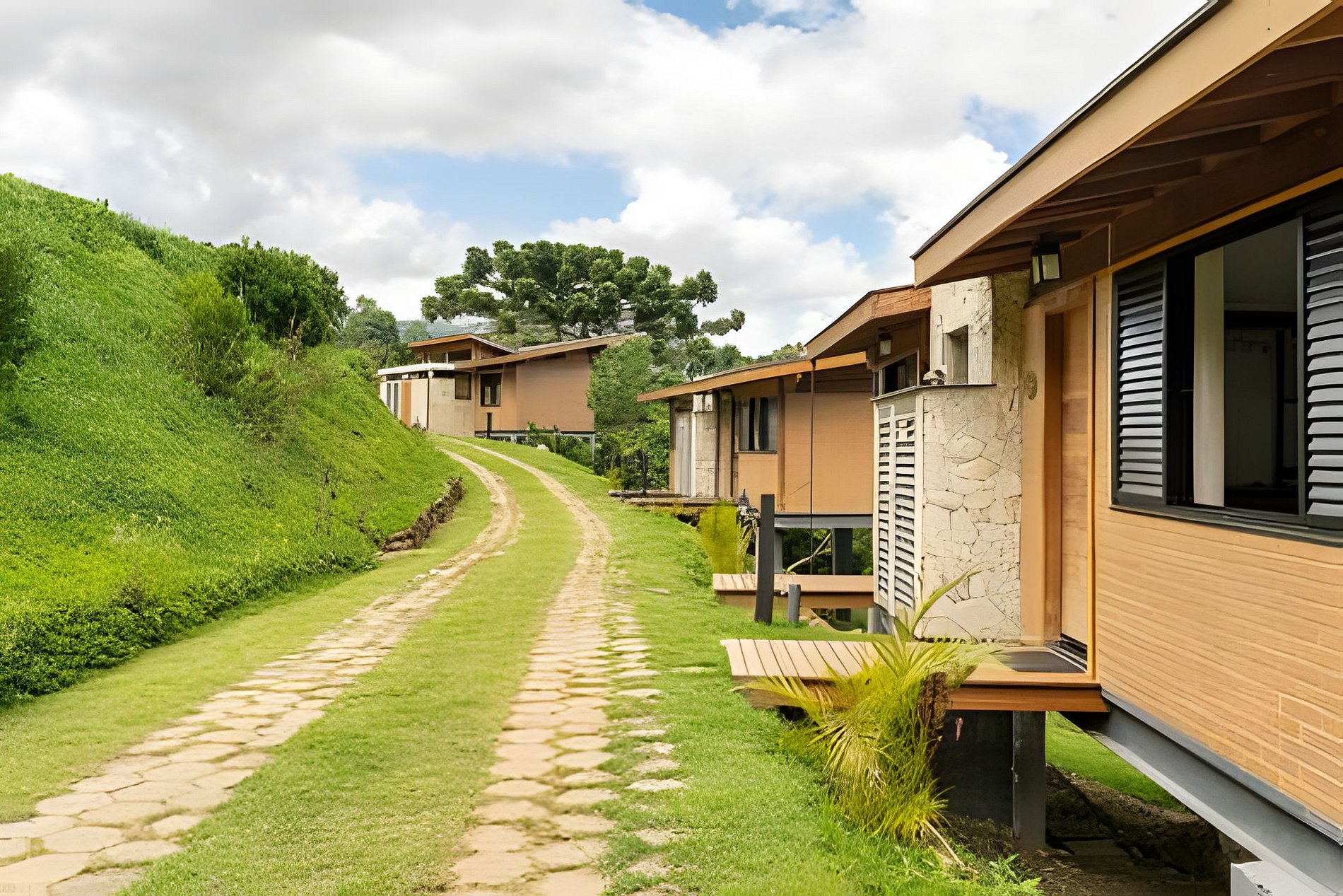 Os chalés encontram-se na serra do Quilombo, bairro de preservada tradição cultural e de comunidade muito acolhedora.